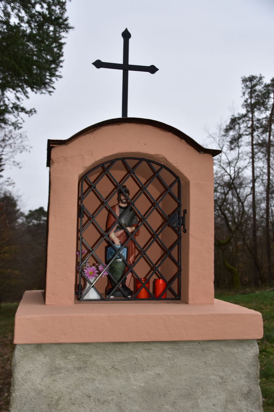 - am Rand der Pleiner Hochfläche in Spalteck (das von Wittlich kommende Tal spaltet sich in Lieser- und Otterbachtal). Bei der Flurbereinigung wurde der Bildstock von oberhalb der Kopswies und unterhalb der Lehmkaul hierhin versetzt: Donatus