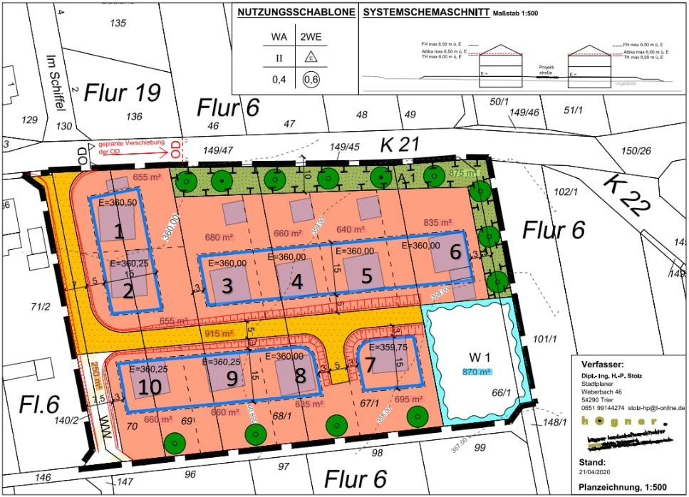 - 6: 835m² – noch zur Ausschreibung stehende Grundstücke nach den Vergaberichtlinien