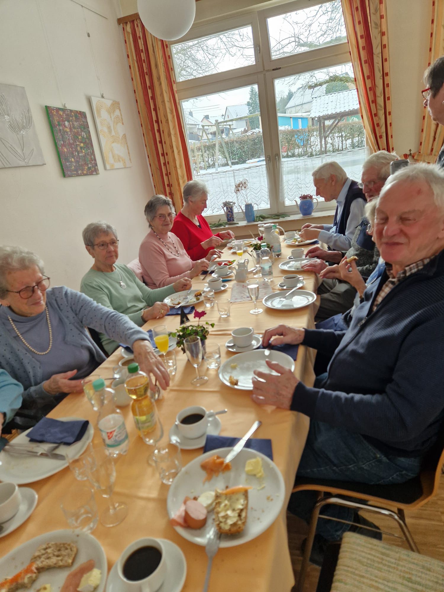 Beim ersten Seniorentreffen im neuen Jahr war brunchen angesagt. Vom Seniorenteam wurden die Tische wie immer fürstlich und liebevoll gedeckt sowie den umfangreichen Brunch anspruchsvoll angerichtet. Den Senioren*innen hat es bei diesem Ambiente mit Sicherheit gut geschmeckt und konnten etliche Zeit im Gemeinderaum verbringen. Dank an dieser Stelle unserem Seniorenteam für eure tolle Vor- und Zubereitung. Die teilnehmenden Senioren danken es euch. Gerne könnten weitere Personen an den monatlichen Treffen teilnehmen.